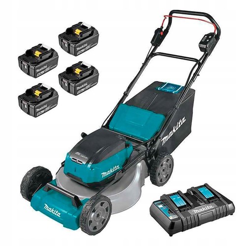 Profesjonalna akumulatorowa kosiarka Makita DLM530PT4 (2 x 18 V). W komplecie 4 baterie 5Ah i ładowarka DC18RD